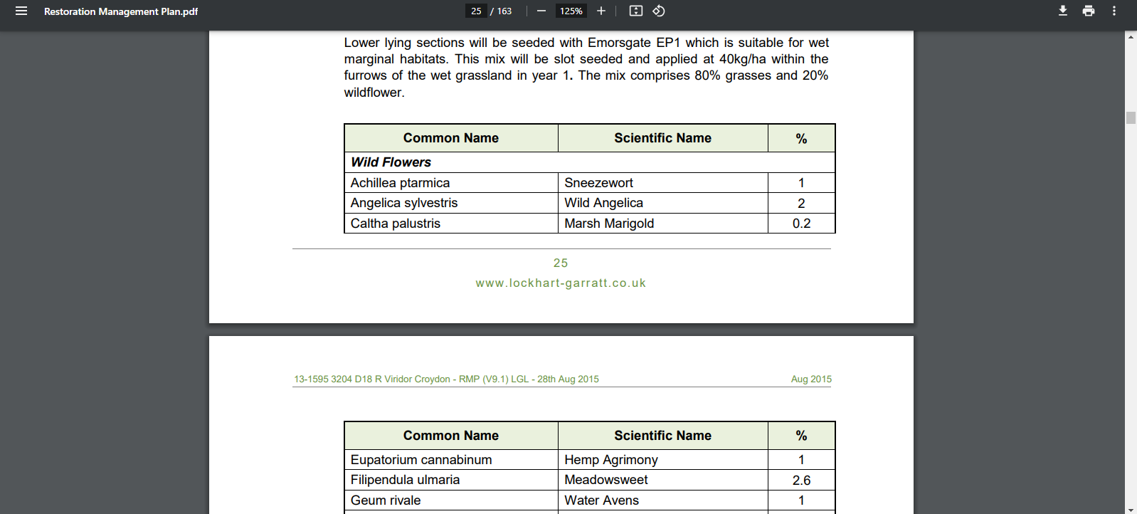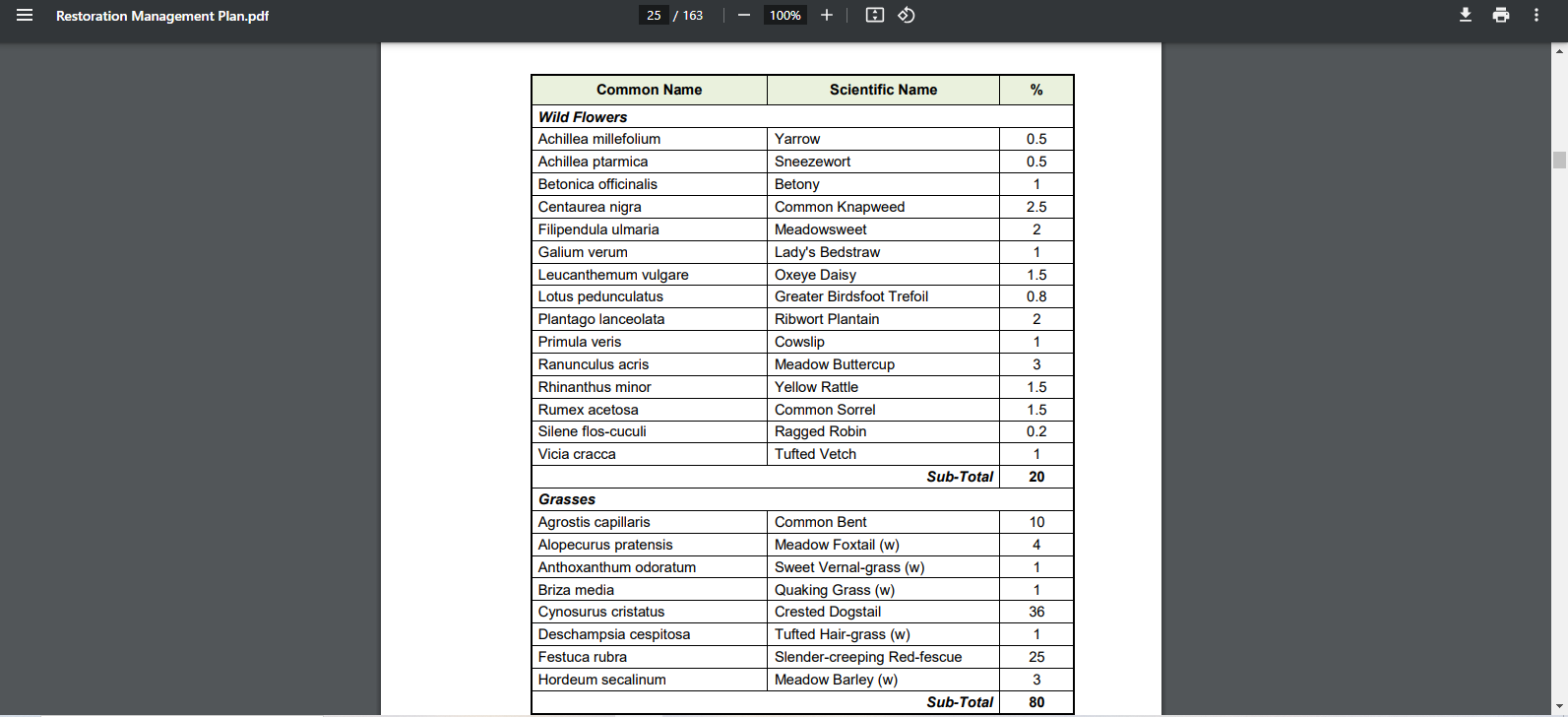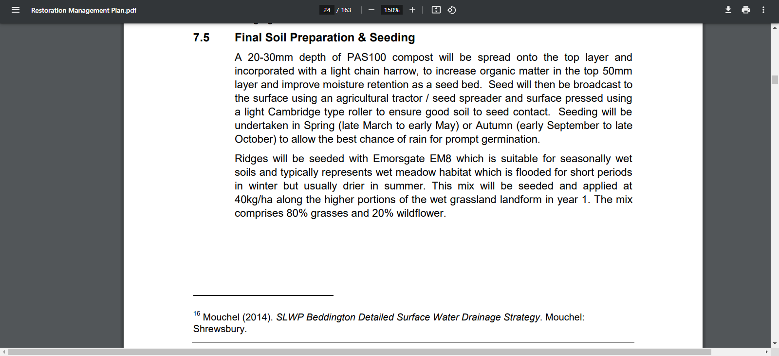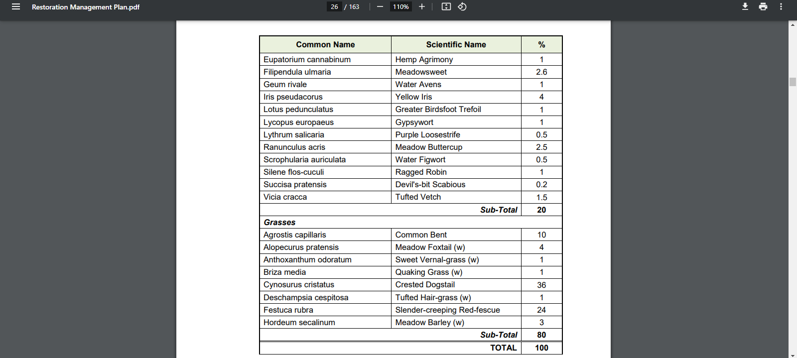The BFBG suggests vegetation should be reduced to a suitable level using brush cutters, then the cut vegetation must also be collected and removed, and the area seeded with the appropriate plant mix which will provide the low level vegetation that Lapwing chicks require (see Appendix for details of appropriate seed mix).